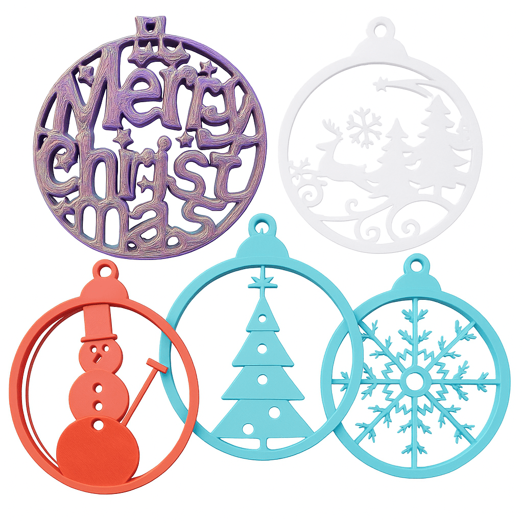 3D-gedrucktes Weihnachtsornament – Filigrane Dekoanhänger in 5 Motiven