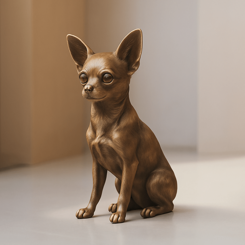 Our Chihuahua sculpture is more than just a decorative object—it embodies personality, alertness, and timeless design in a compact format. The attentive posture, finely sculpted proportions, and lively expression impressively showcase the charming character of this popular dog breed.