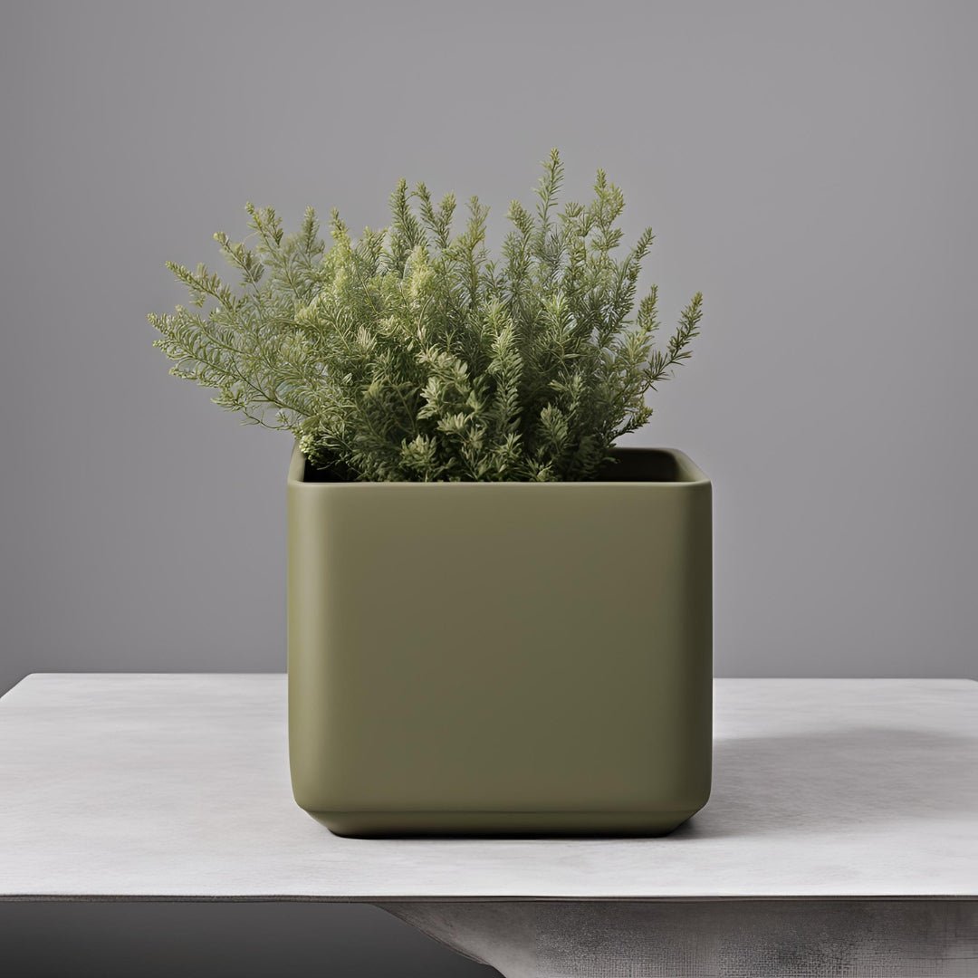 The "Plant Cube" is a minimalist flowerpot for modern spaces – with a clean shape, matte finish, and a calm color. Finished in rich olive and made from robust, sustainable material, it showcases your plants without being too prominent.
