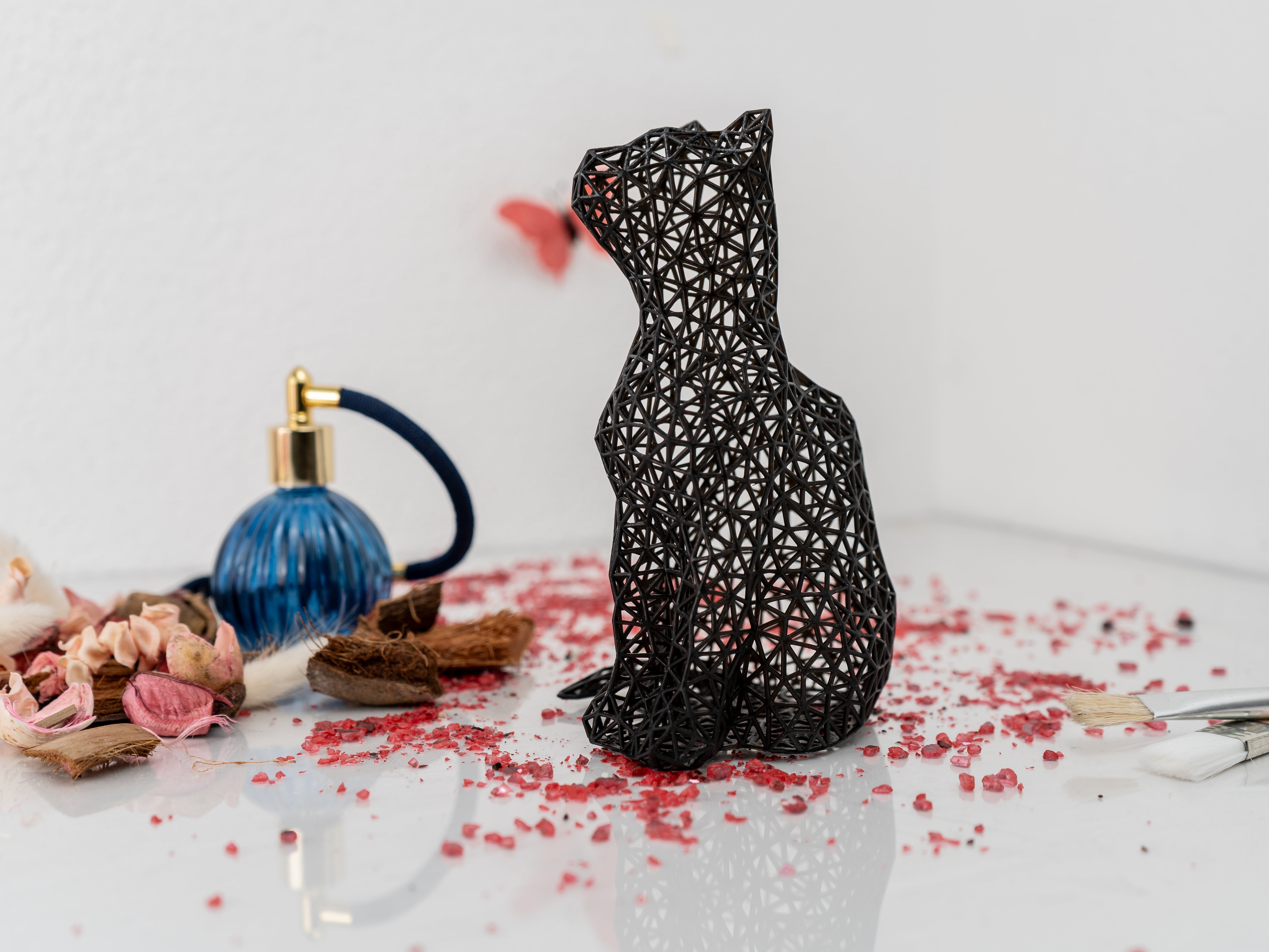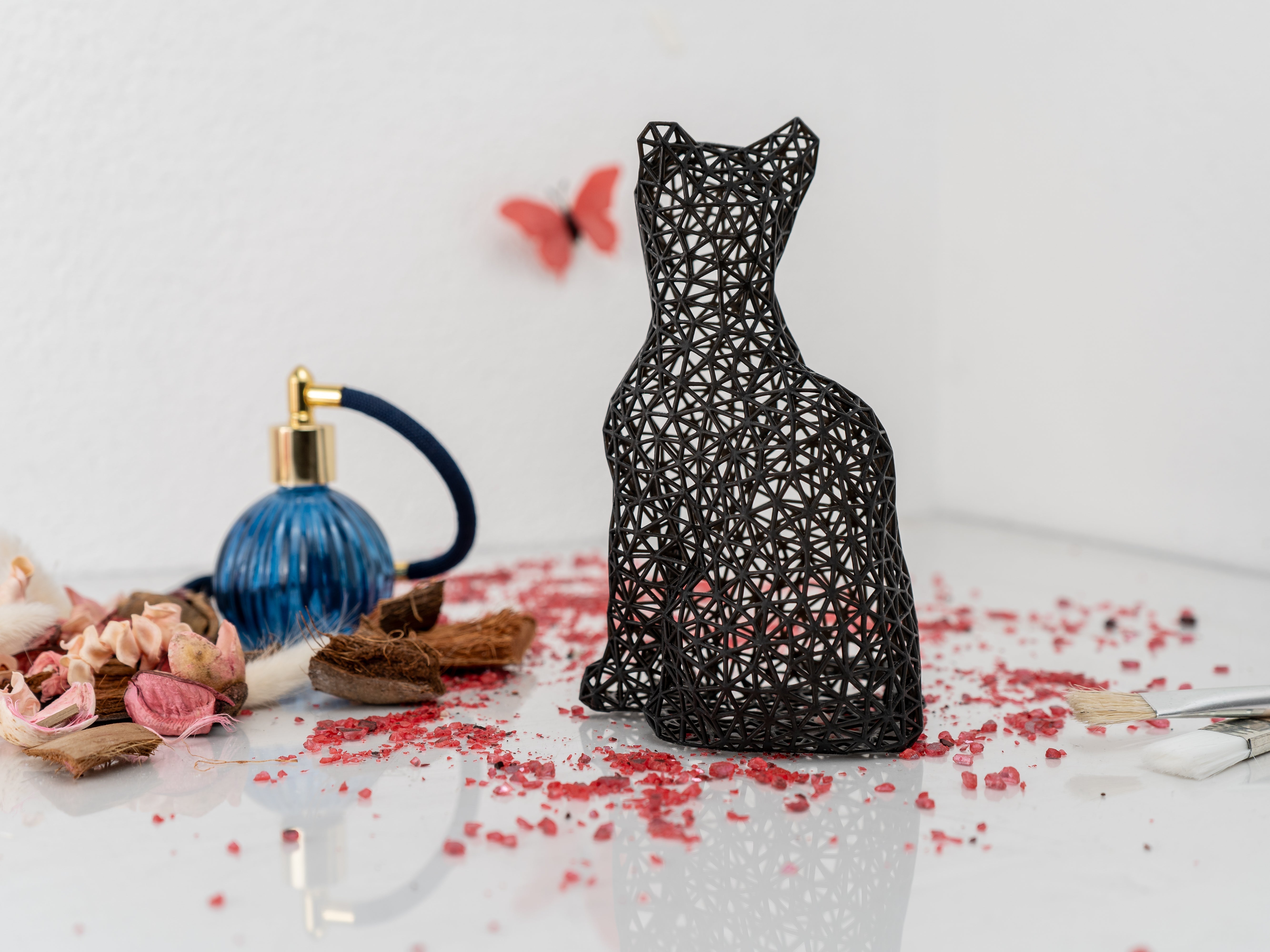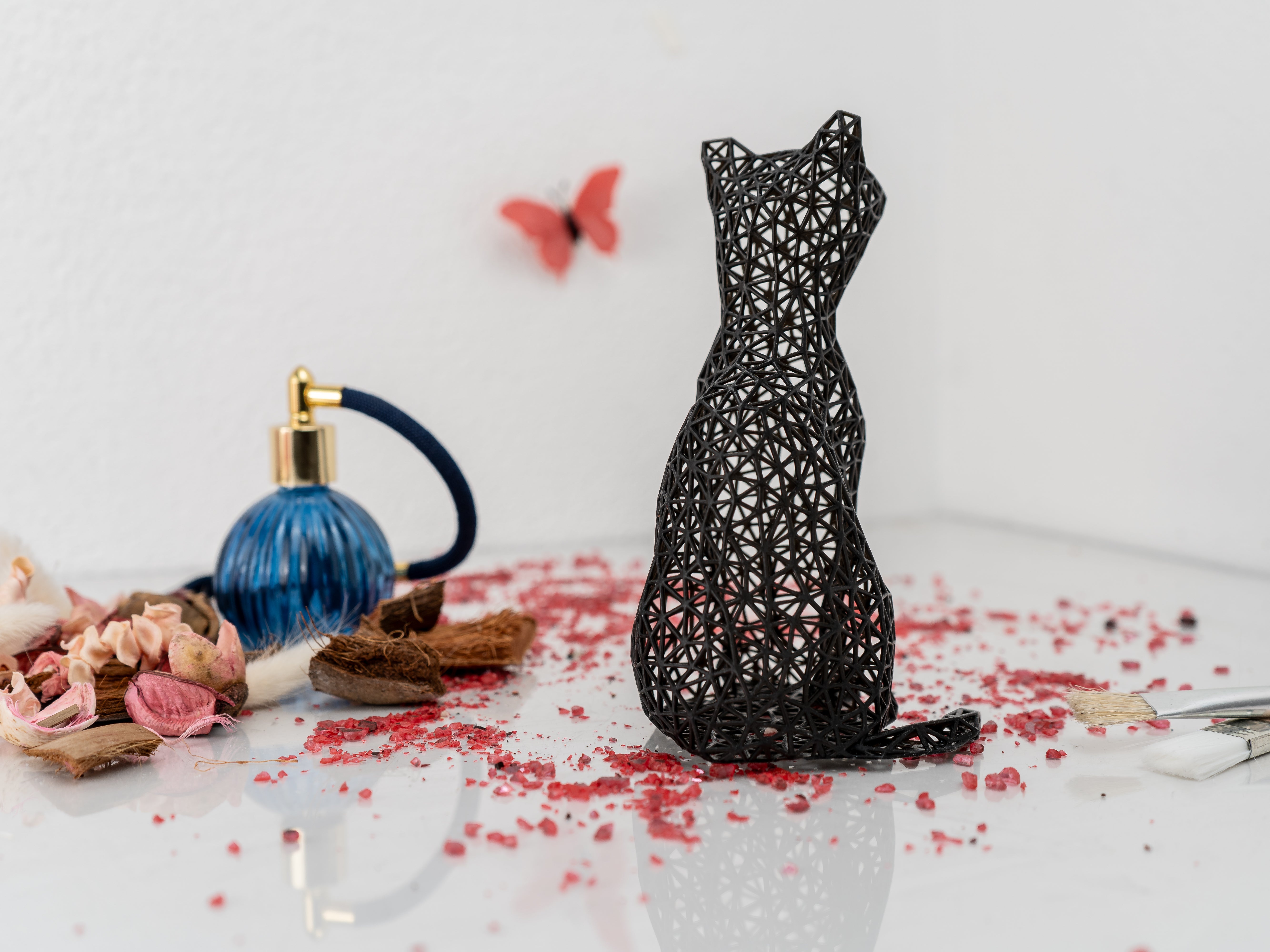 Crafted in Austria with meticulous precision, I’m no ordinary 3D print. I’m made using high-precision resin printers that create an invisible layer height finer than a cat’s whisker—meow-velous, isn’t it? Each of my sleek curves is hand-designed and hand-finished, ensuring I exude elegance and personality in every room. And don’t worry—I’m as tough as your favorite feline, made from durable acrylic resin to survive a tumble from your desk (but let’s avoid testing that, shall we?). 🖤🤍