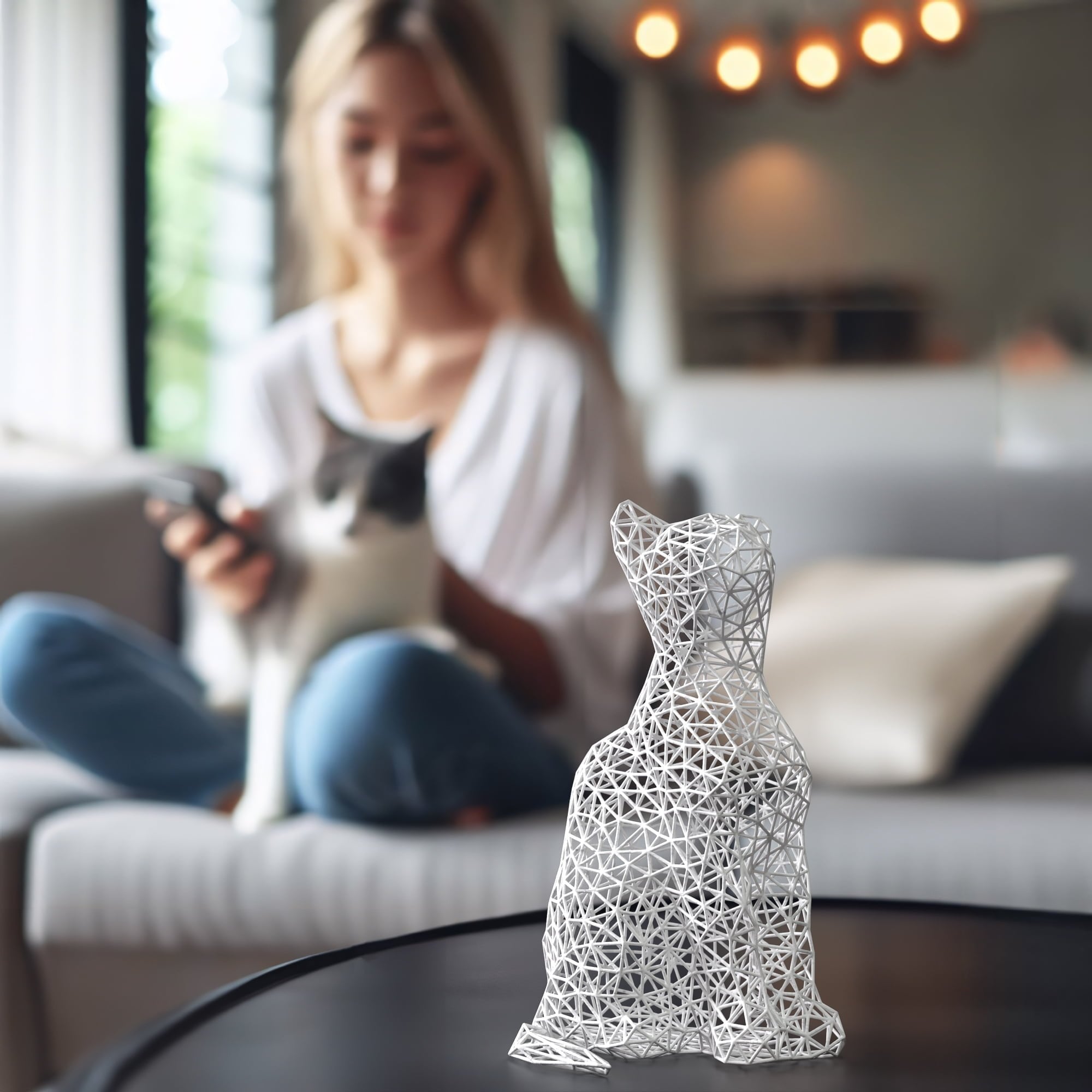 Hello, I’m the Sitting Cat Sculpture, and I’m here to lounge gracefully in your home while adding a touch of feline charm to your decor. Whether you’re a lifelong cat lover or someone who just adores modern, whimsical art, I’m the purr-fect choice to elevate your space.