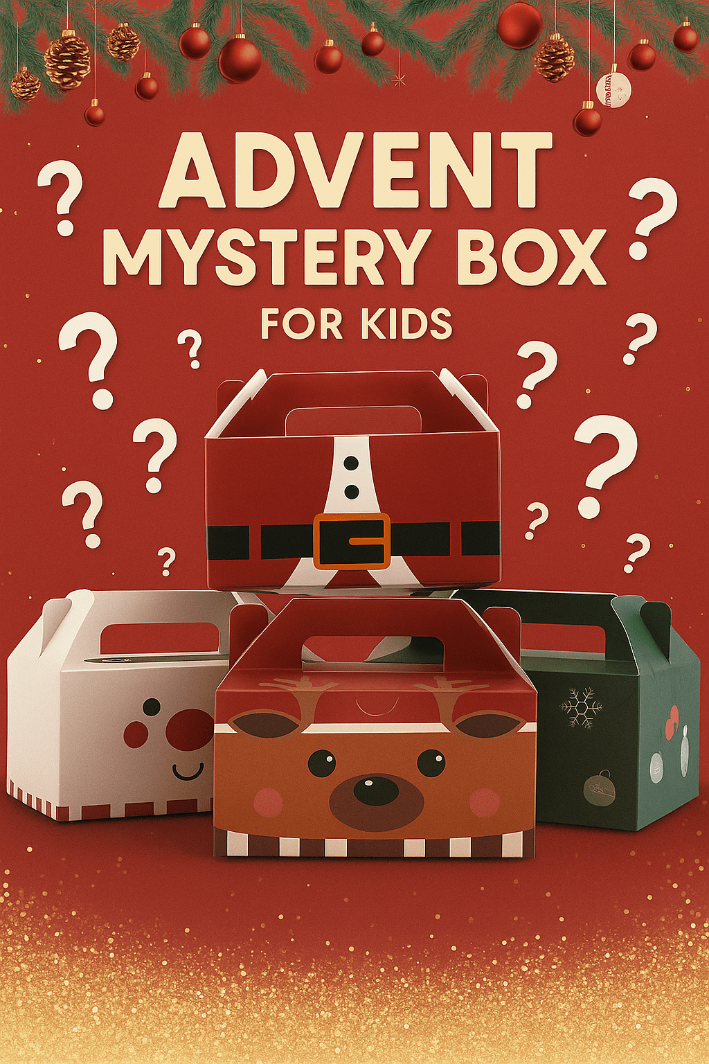 Unsere liebevoll gestaltete Advent Mystery Box für Kinder steckt voller kleiner Überraschungen, Spielspaß und Weihnachtsfreude.