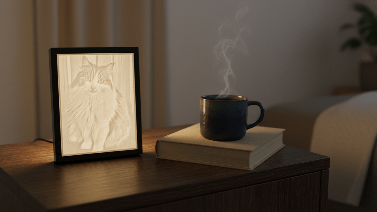 Jedes Leuchtbild wird speziell für dich in einem faszinierenden 3D-Druckverfahren gefertigt. Dabei wird dein ausgewähltes Foto in ein feines Relief umgewandelt. Sobald das Licht im Inneren erstrahlt, enthüllt das Bild seine verborgenen Details und schafft eine magische Atmosphäre, die du in keinem gewöhnlichen Bilderrahmen finden wirst.