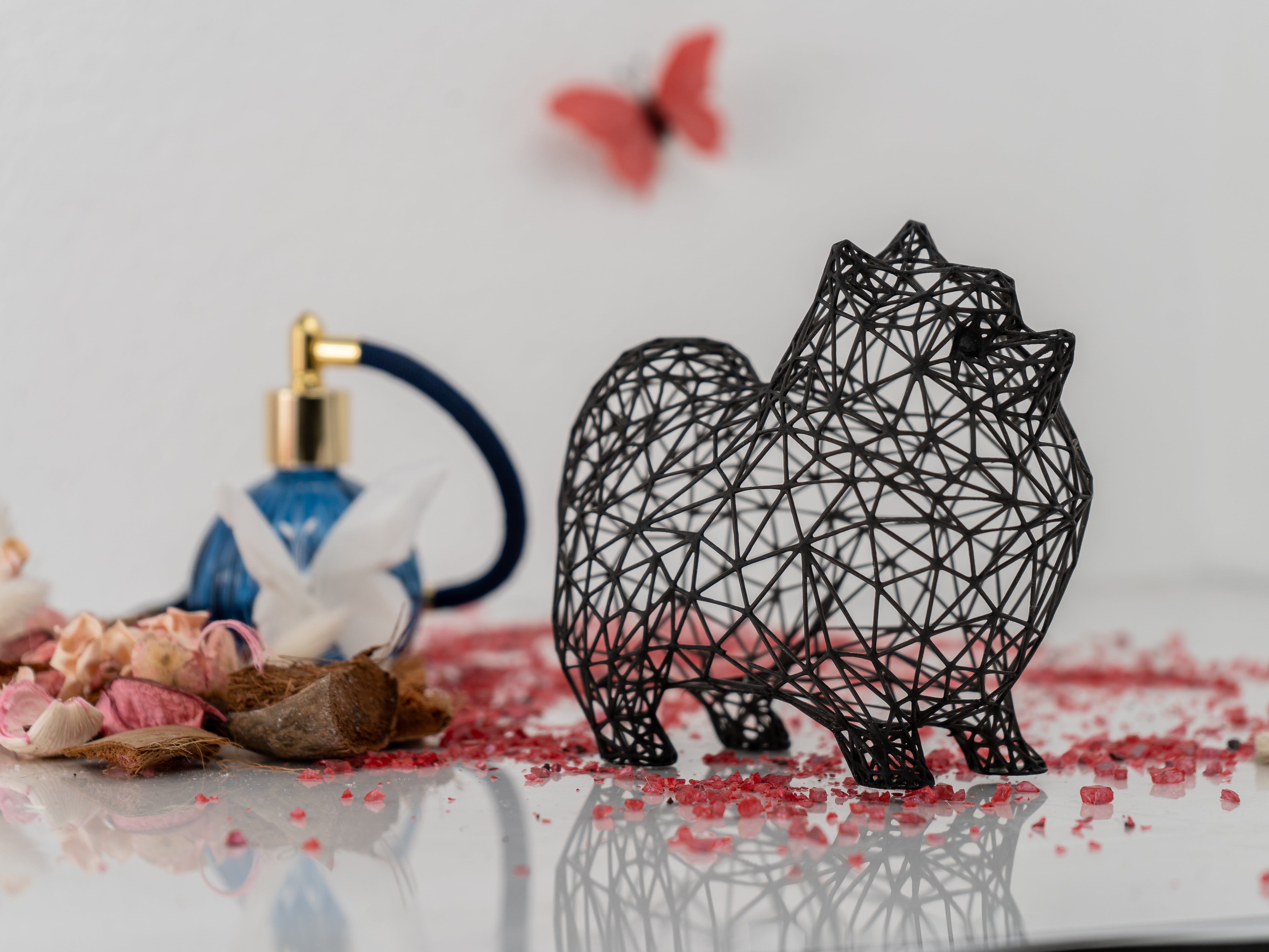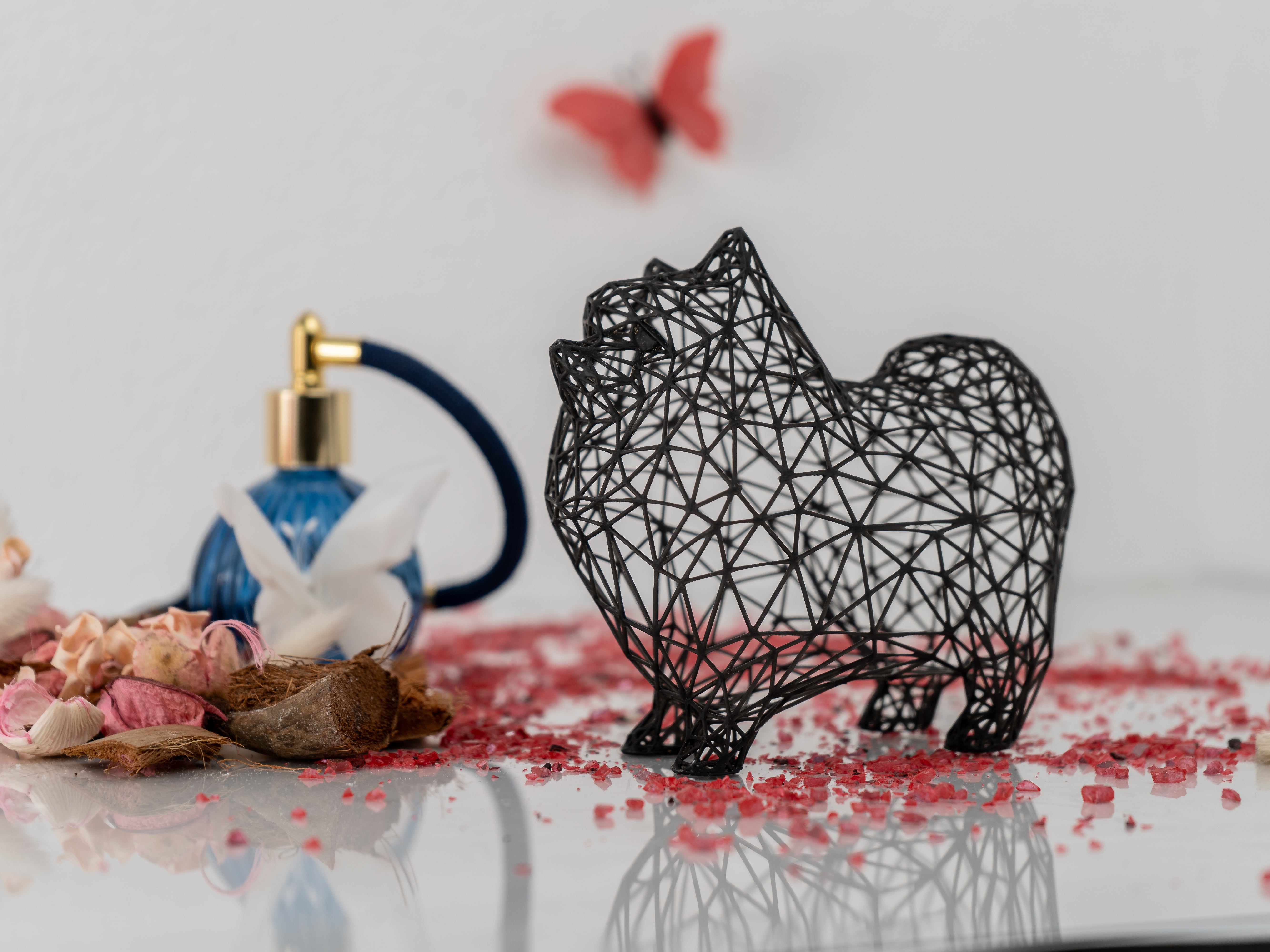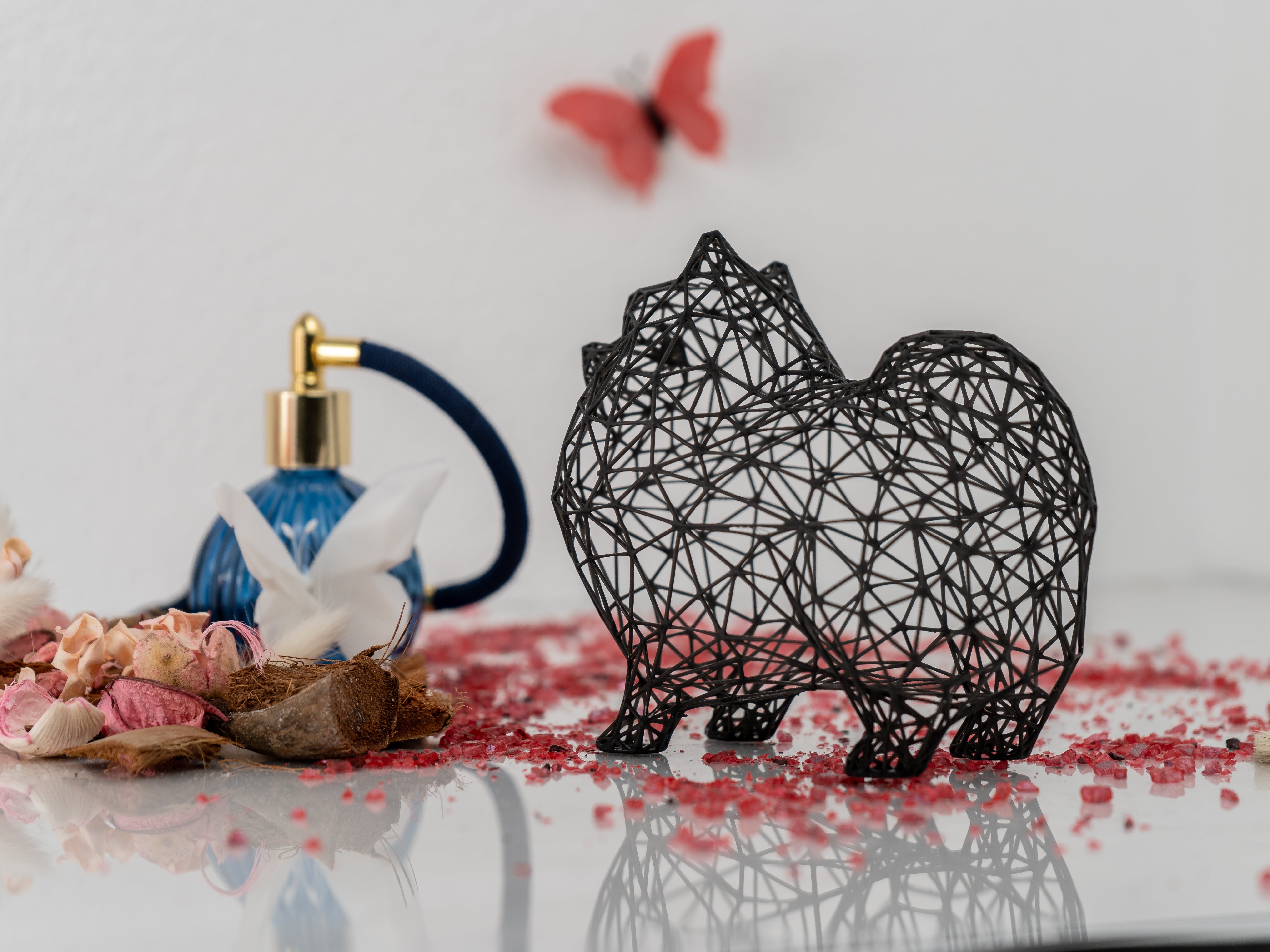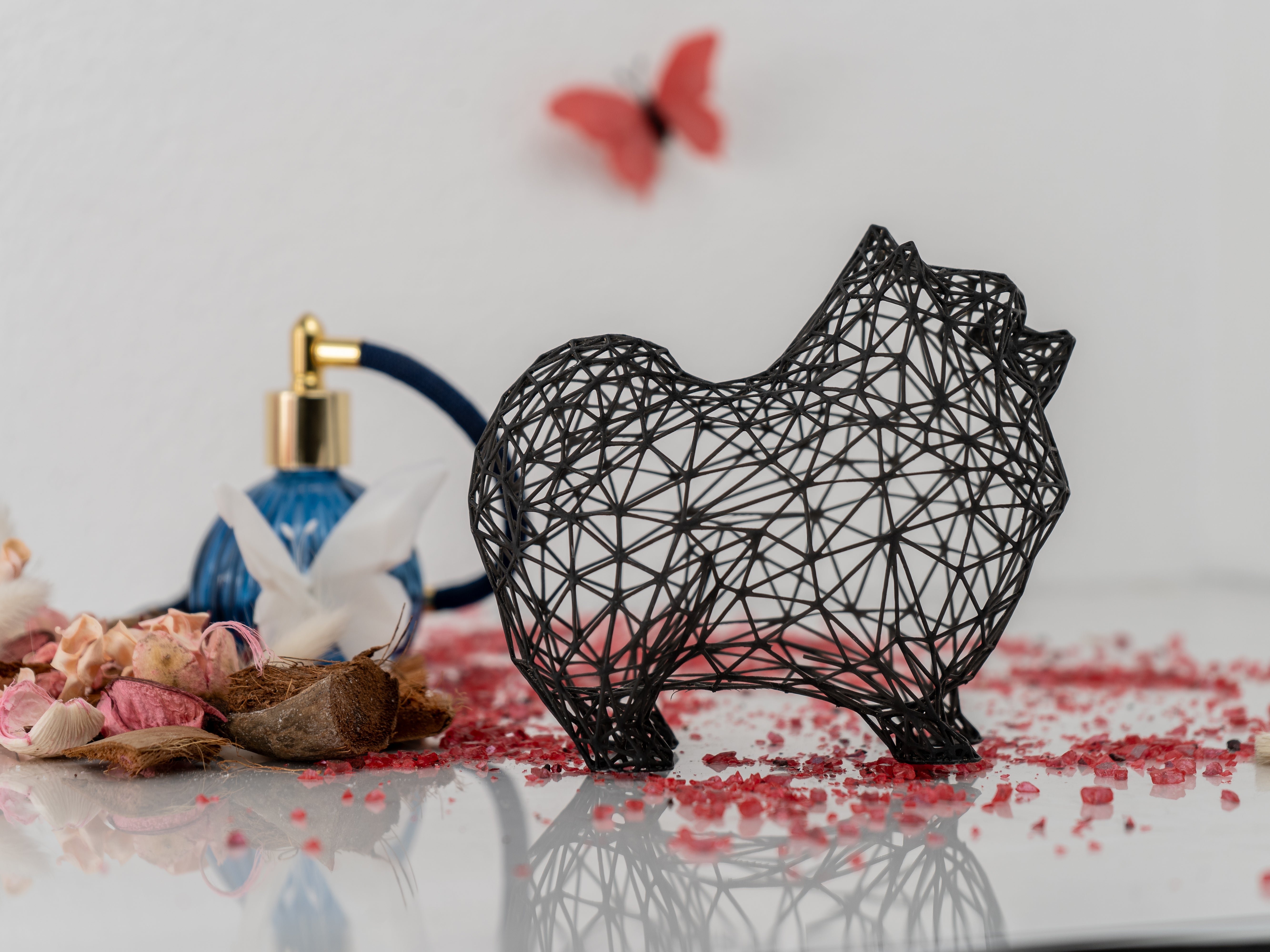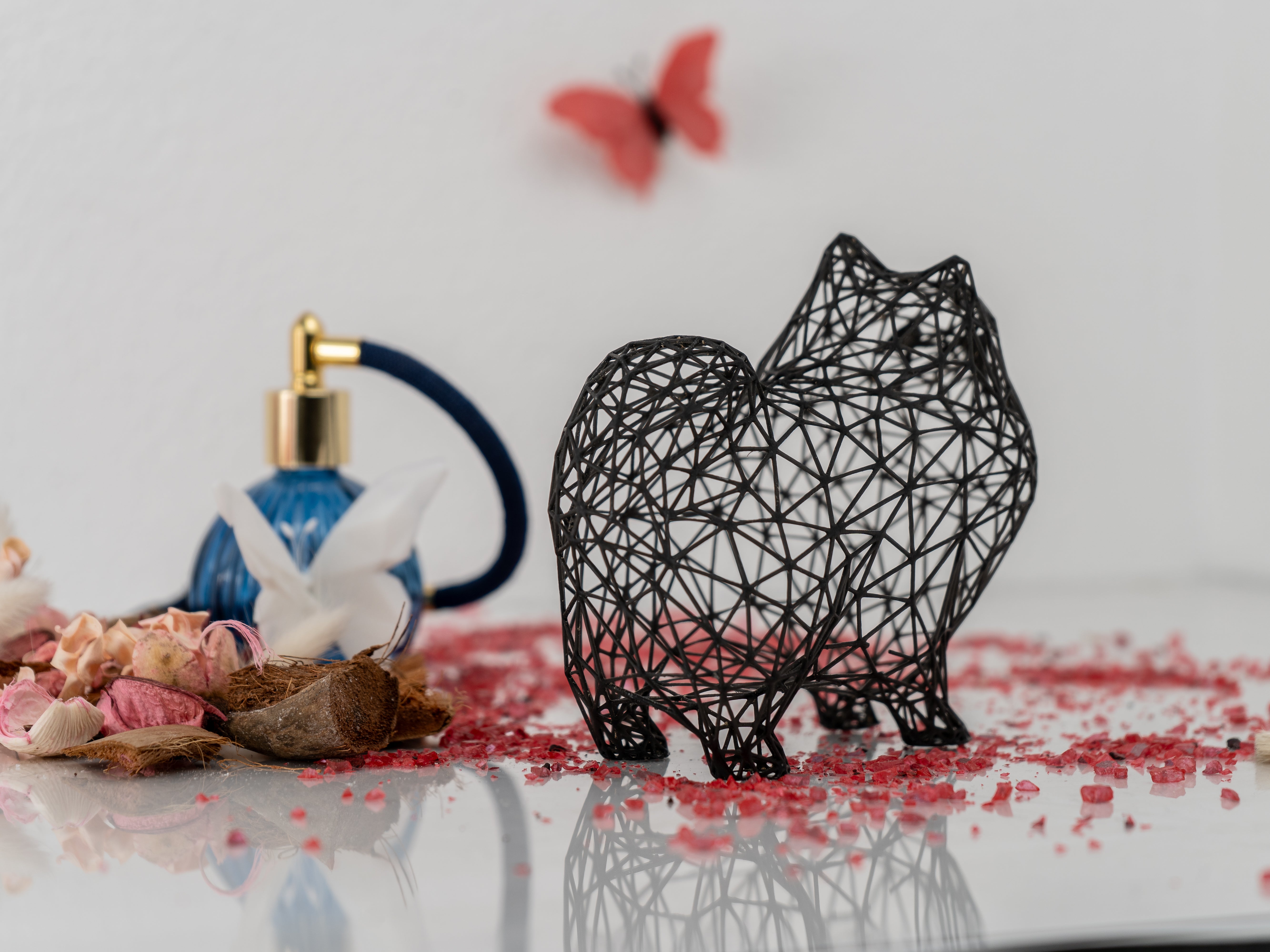 Lovingly crafted in Austria, I’m made using high-precision resin printers that create a finish smoother than a Pom’s perfectly groomed coat. My wireframe design captures the lively spirit of a Pomeranian while blending seamlessly into any modern or eclectic decor. Hand-designed and hand-finished, I’m made from durable acrylic resin, so while I may look delicate, I’m tougher than I look—go ahead, place me anywhere! 🖤🤍